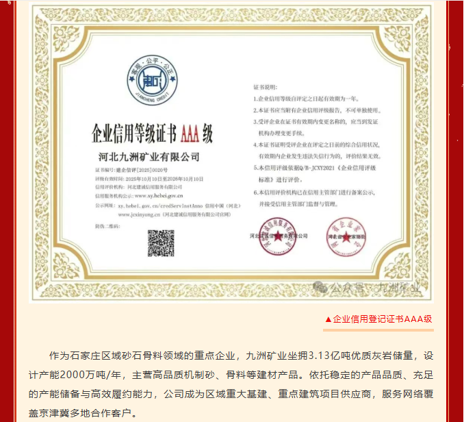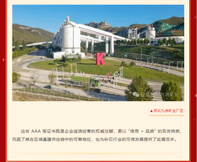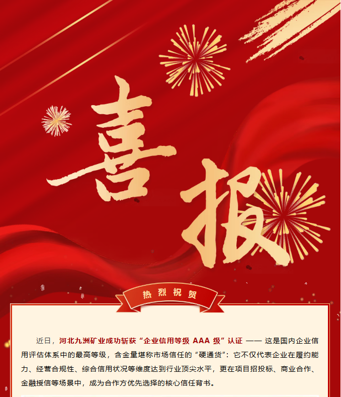 喜报|河北九洲矿业荣获“企业信用等级 AAA 级” 认证