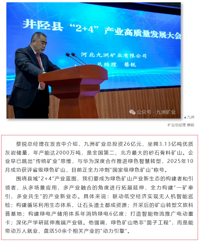 锚定产业新蓝图!九洲矿业受邀出席井陉县“2+4”产业高质量发展大会