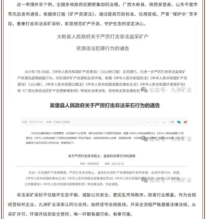 严治非法采矿采砂,九洲矿业践行合规守护绿水青山